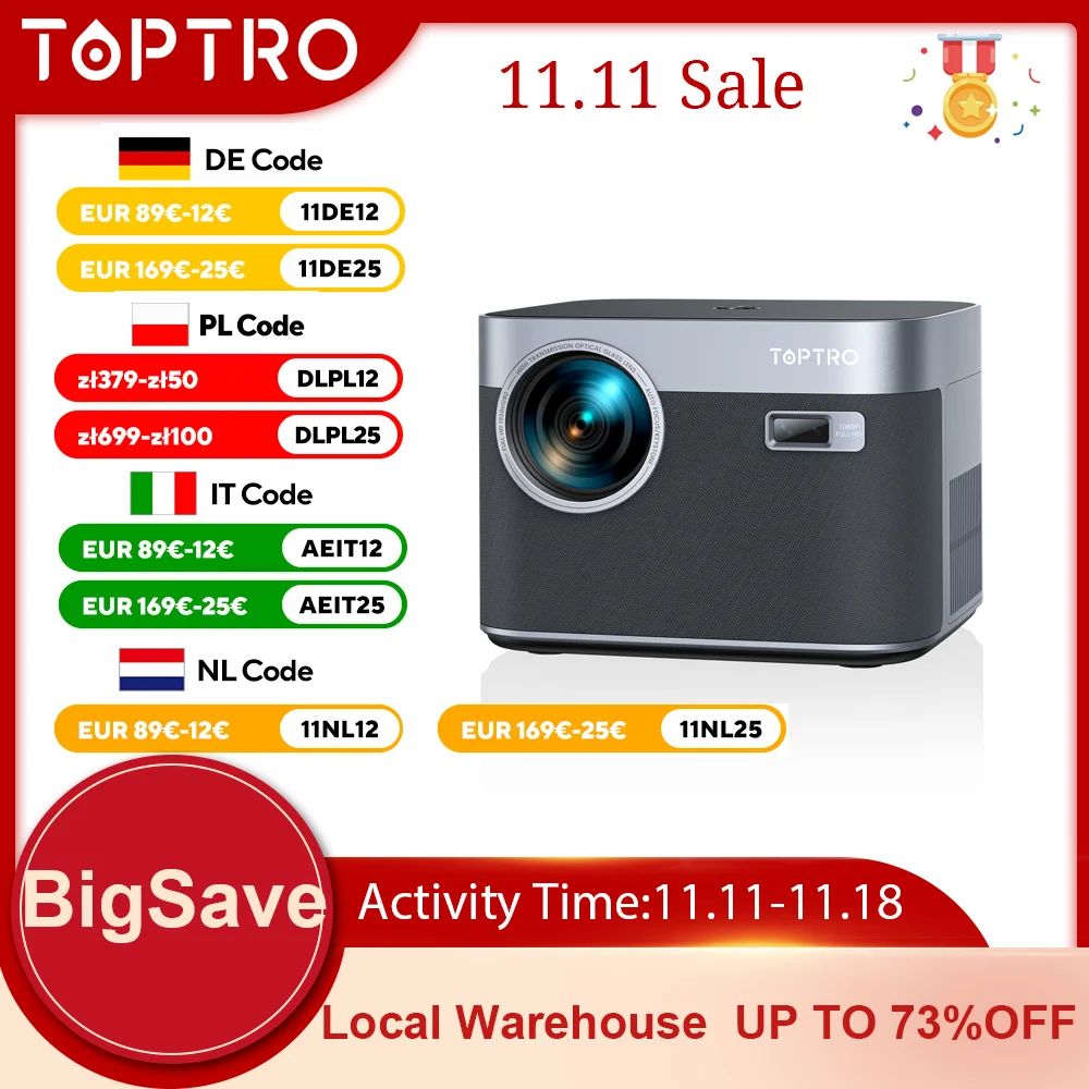 TOPTRO Projector 4K Android 9.0 26000 Lumens native 1080P WiFi6 Bluetooth Projector Auto Focus/Keystone Outdoor Home Theater