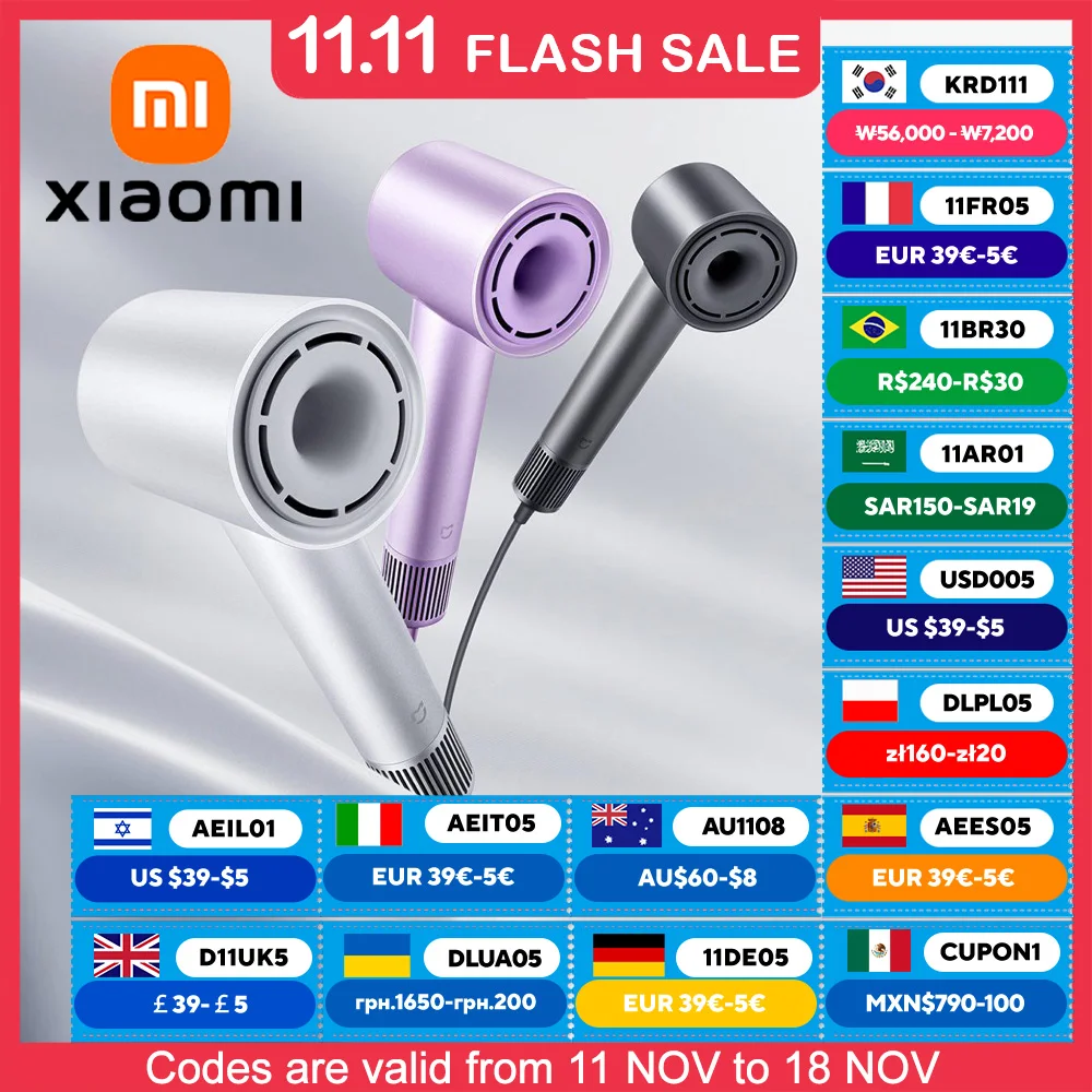 XIAOMI MIJIA H501 High Speed Hair Dryer 62m/s wind speed Negative Ion Hair Care 110000 Rpm Dry 220V CN Version (With EU Adapter)
