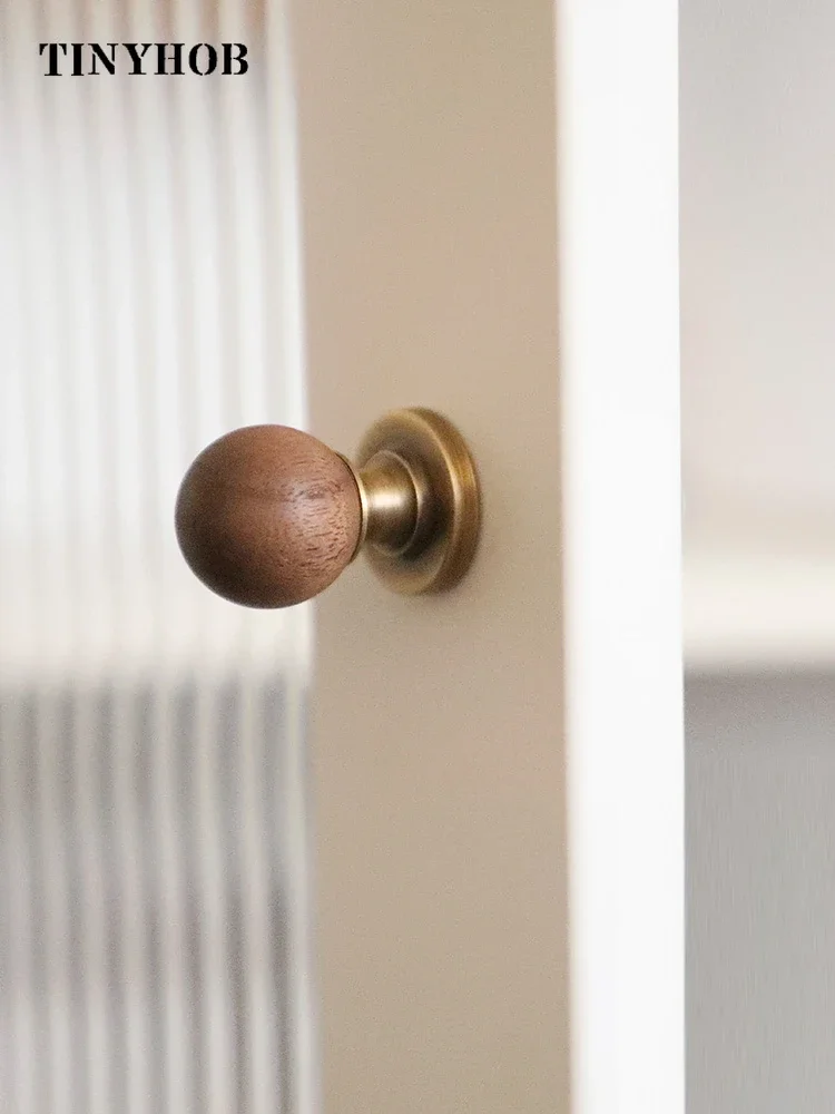Tinyhob Natural Wooden + Brass Cabinet Drawer Wardrobe Knobs for Bathroom Furniture with Base Handle Furniture Hardware