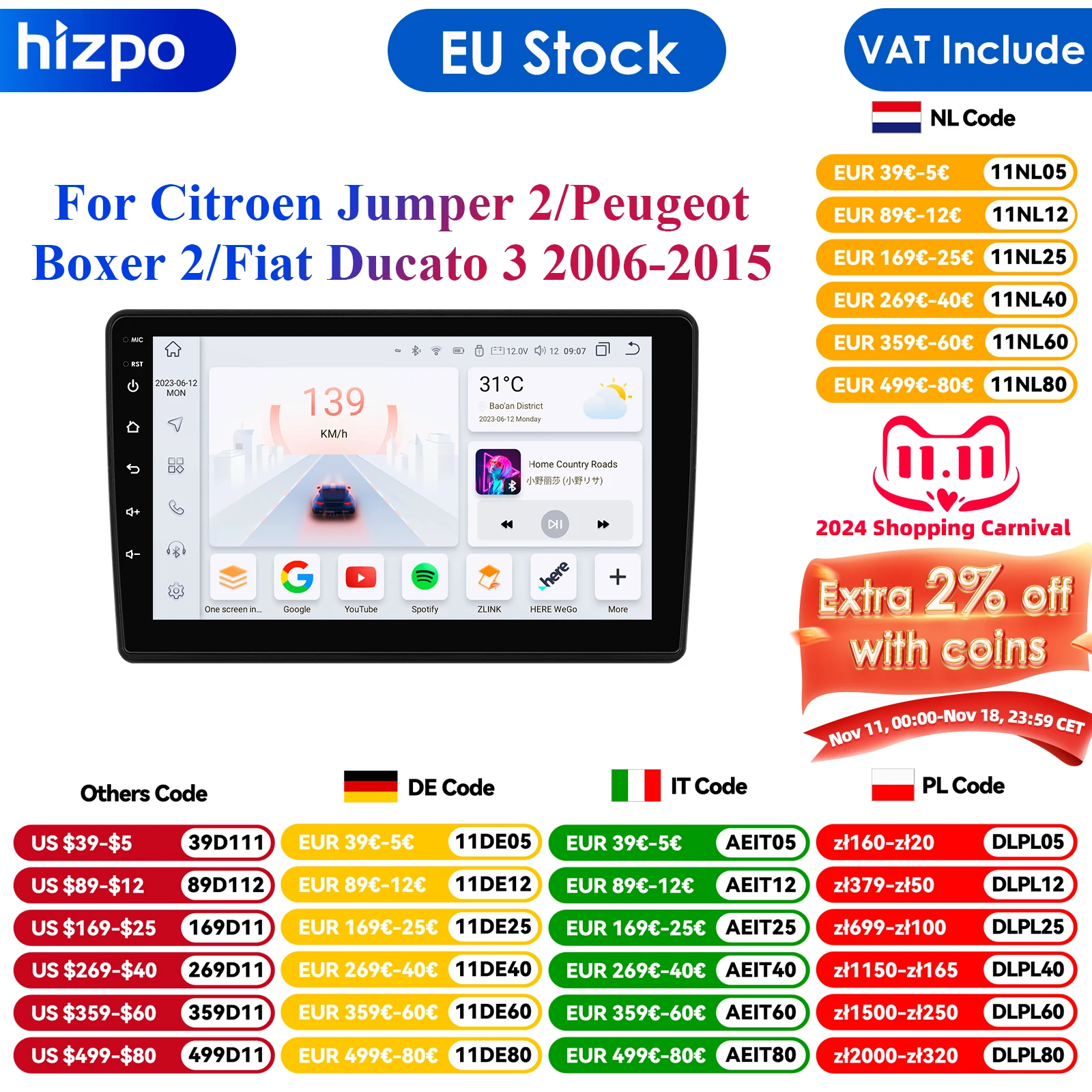 Carplay 4G-LTE 2Din Android Radio for Fiat Ducato3 2006-2022Car GPS Navigation AutoRadio Stereo Multimedia Video Player HeadUnit