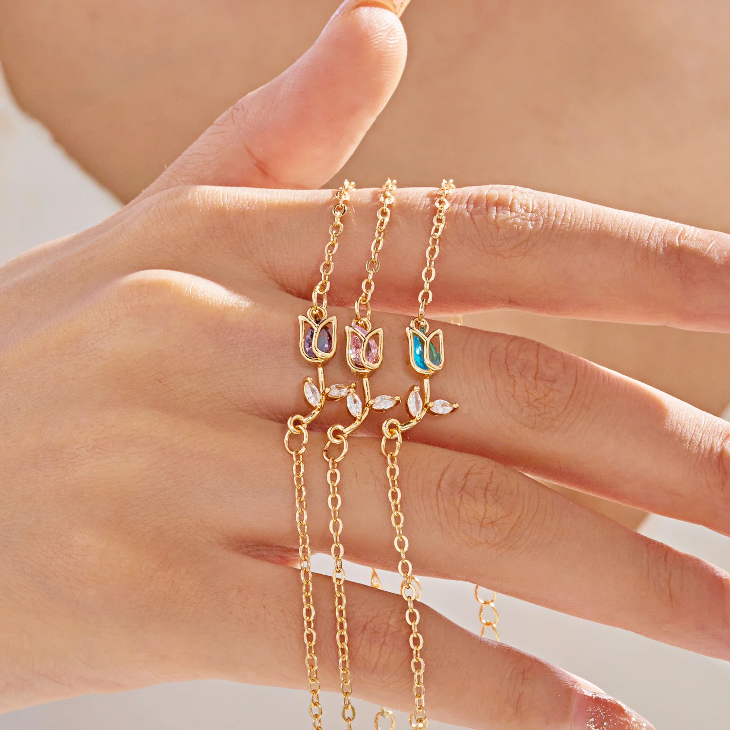 New Elegant Crystal Tulip Flower Bracelet For Women Y2K Sweet Girls Cherry Blossom Zircon Bracelets Luxury Designer Jewelry Gift
