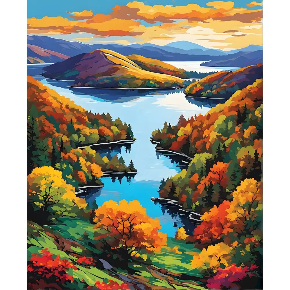 GATYZTORY Diy Painting By Number River Landscape Kits Picture By Numbers Handmade Acrylic Paint On Canvas Home Decoration