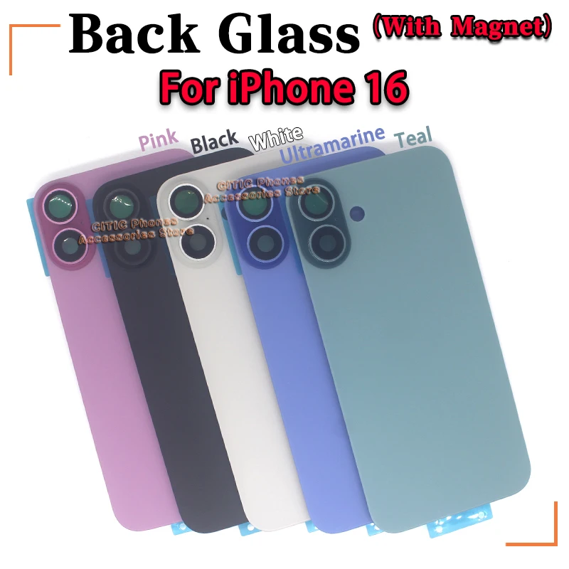 1Pcs-5Pcs OEMBack Glass With Steel Plate Replacement For iPhone 16 Original Colour Rear Cover Glass With Magnet