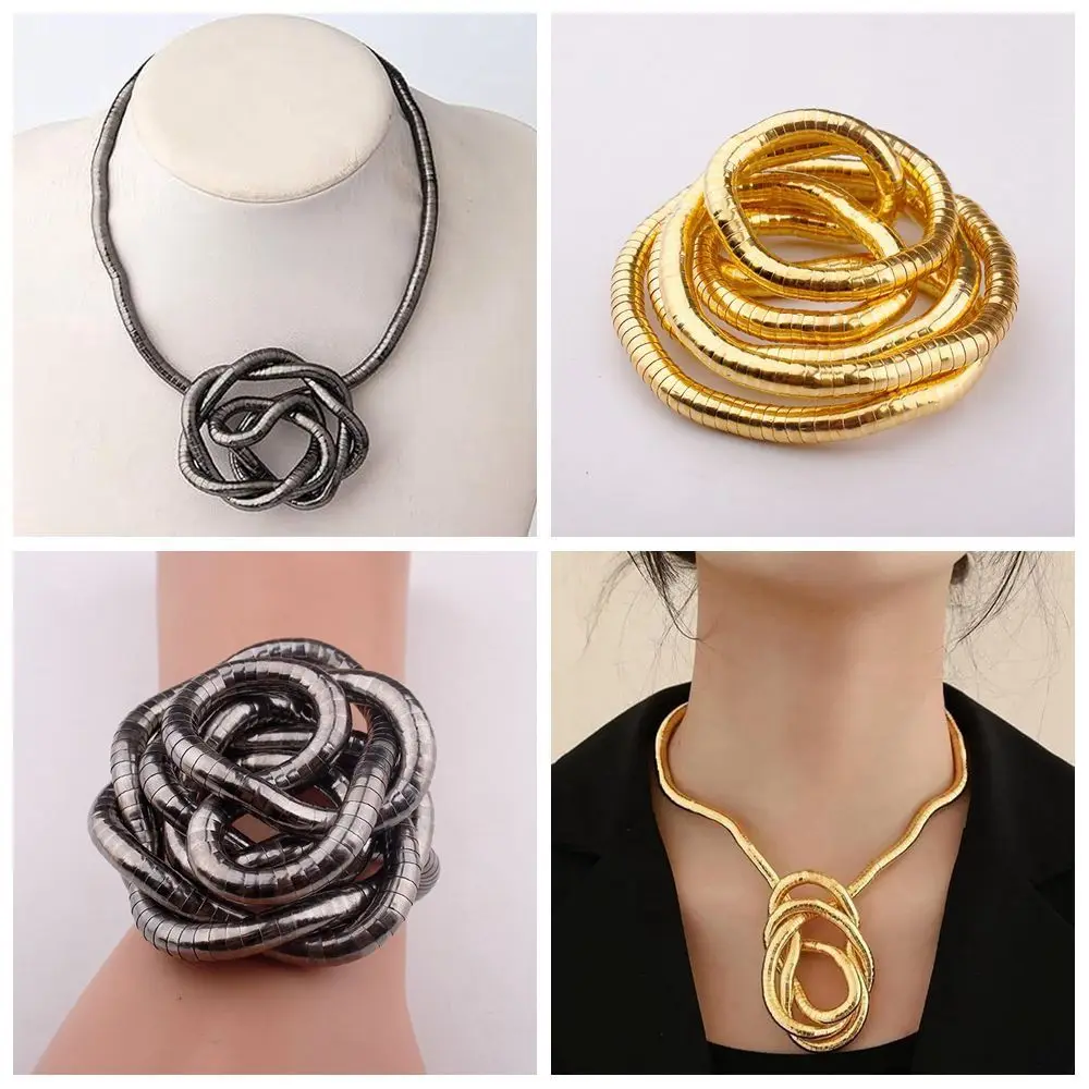 New Alloy Bendable Snake Necklace Silver Color Twistable Flexible Choker Gold Color Punk Bracelet Jewelry Accessories