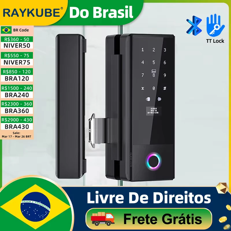 Do Brasil RAYKUBE GS1 TT Lock Bluetooth Smart Glass Lock Fingerprint Digital Door Lock Drill Free For Glass Door