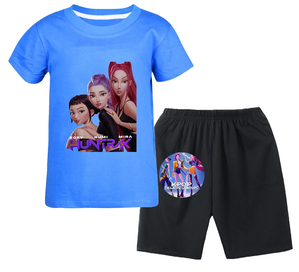 Girls Boys Sports T Shirt+Shorts Set Children KPop Demon Hunters Huntrix Clothing Kids Casual Comfort Outfits Pyjamas Gift