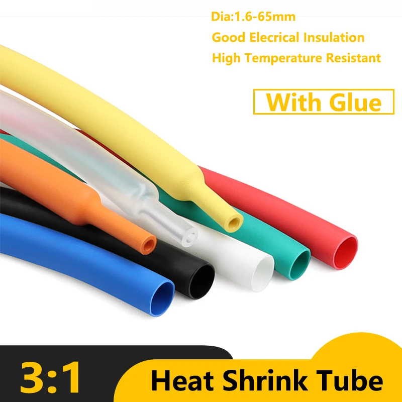 1M 3:1 Heat Shrink Tube with Glue Dia1.6mm~50mm Repair DIY Insulated Cable Protector Cover Sheath Sleeve Shrink Tubing For Wires