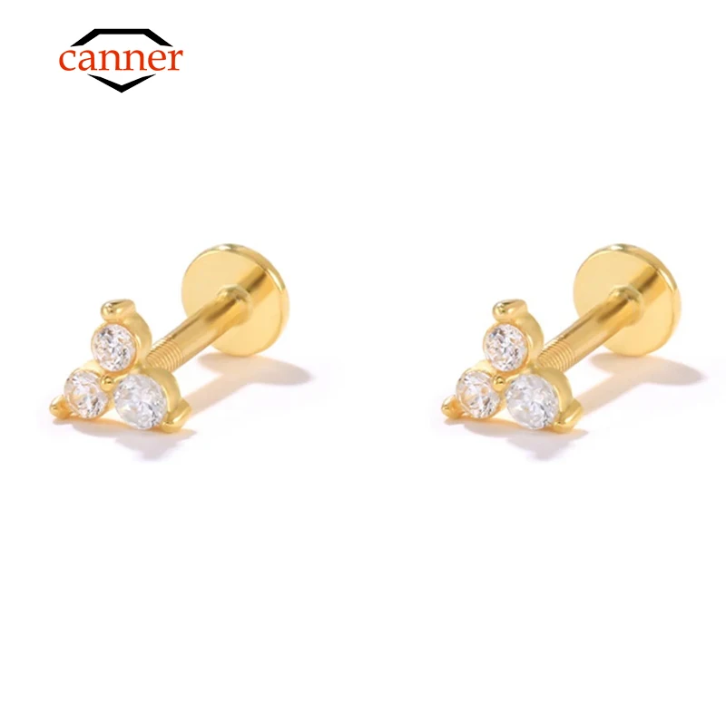 CANNER 2pcs 925 Sterling Silver Zirconia Labret Lip Ring Tragus Cartilage Piercing Stud Earrings for Women Men Earring Jewelry
