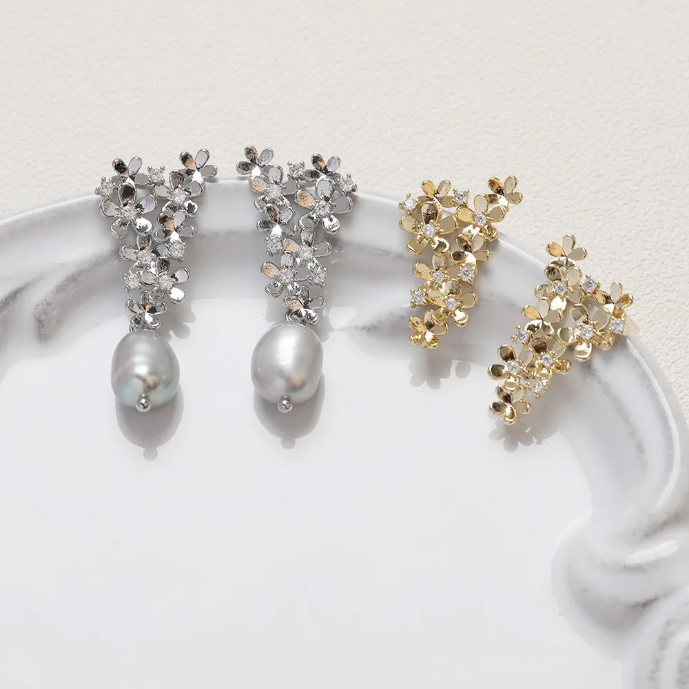 1Pair 14K Gold Plated Fresh Flowers In Clusters Earrings Accessories Ear Stud Jewelry DIY Making Supplies Components