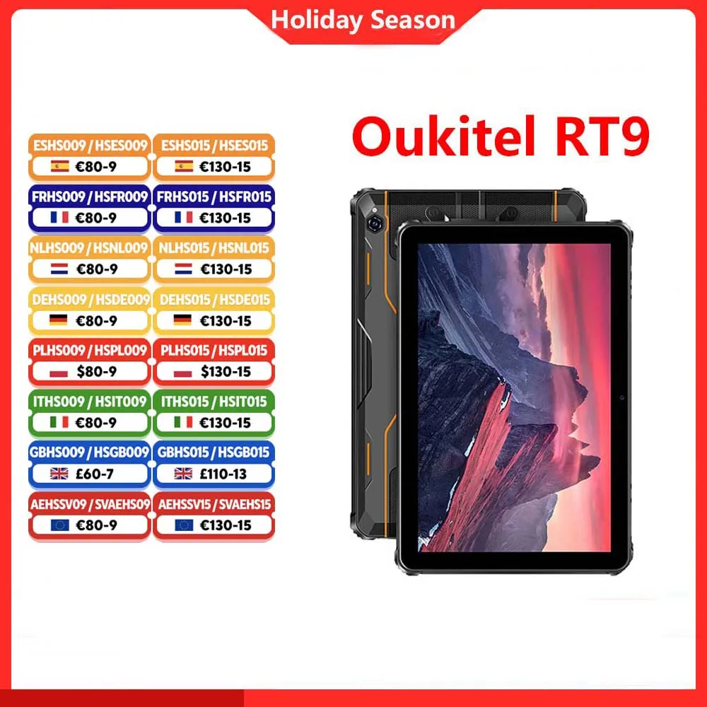Oukitel RT9 4G Rugged Tablet CPU T606 10.1" HD Display 120Hz 24GB RAM 256GB Waterproof Tablet 11000mAh Android 14.0 Tablet PC